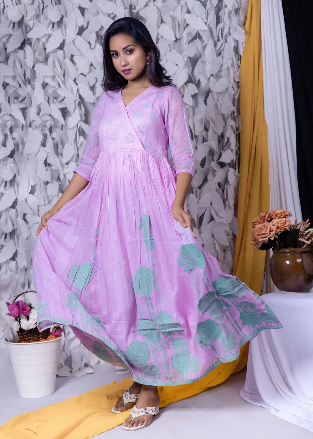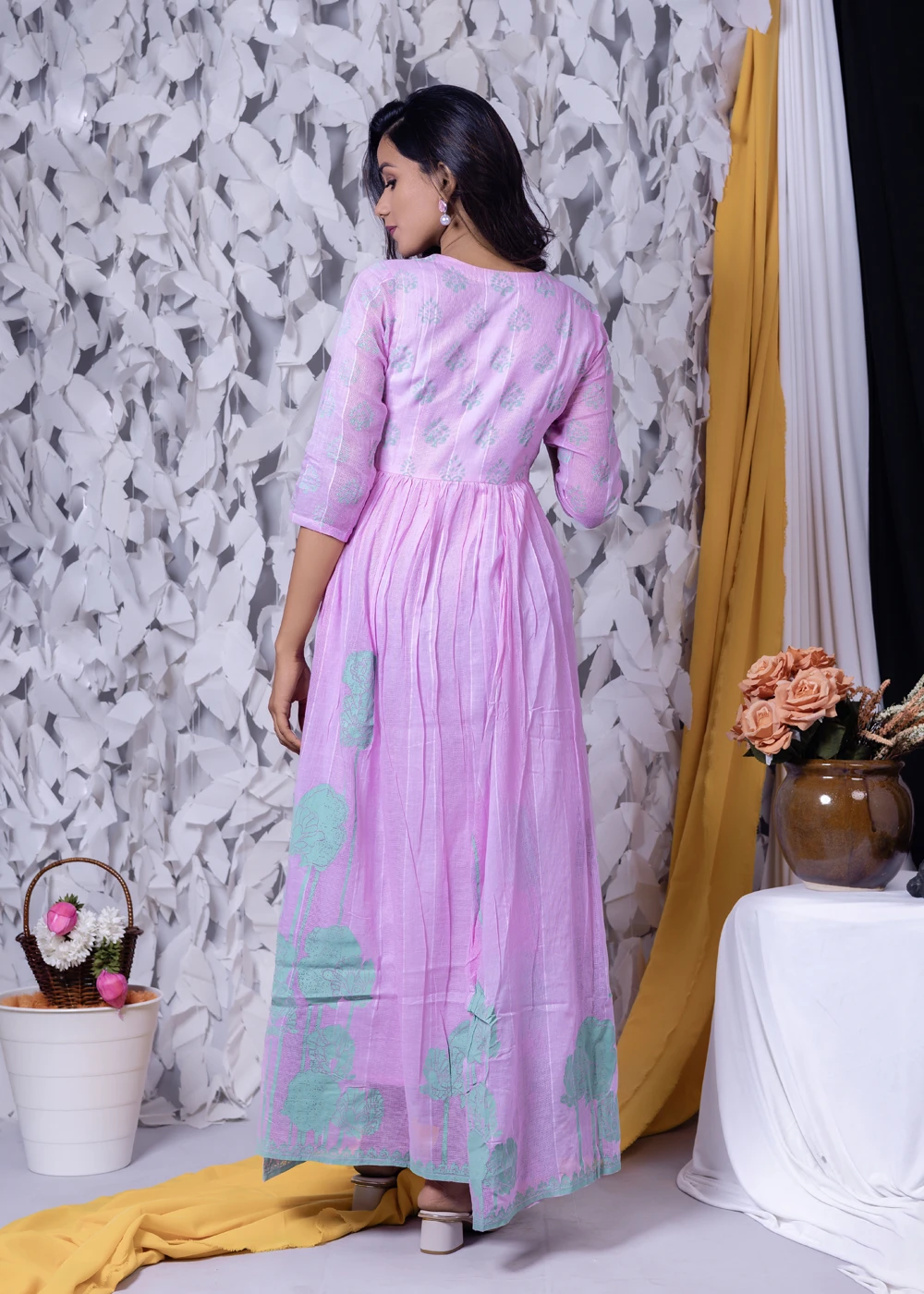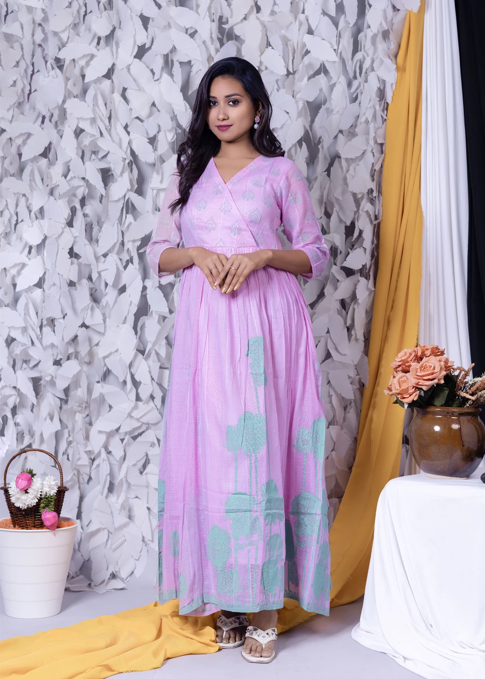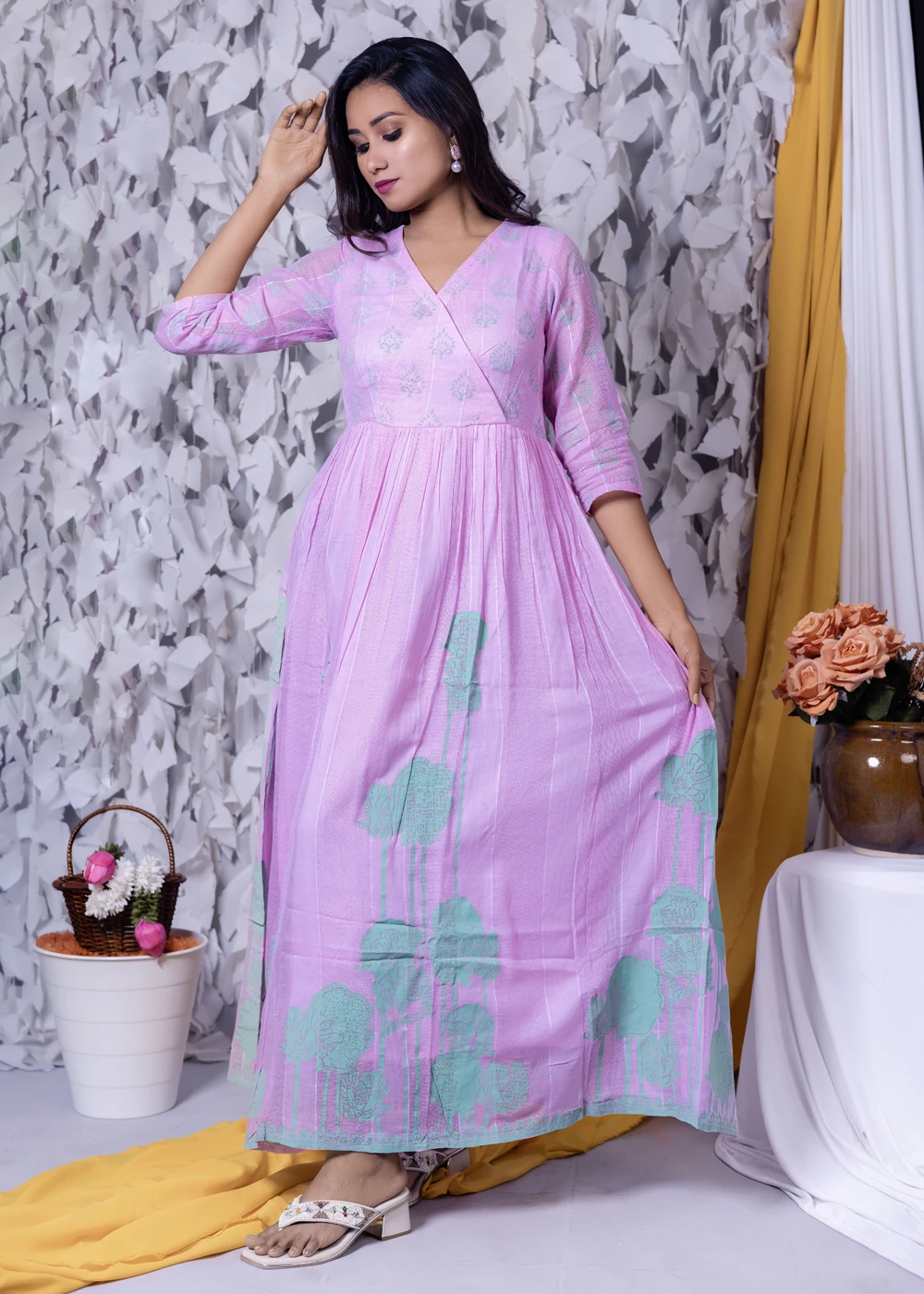 Be the first to review “Green Floral Block & Screen Printed Angrakha Style Maxi Dress”